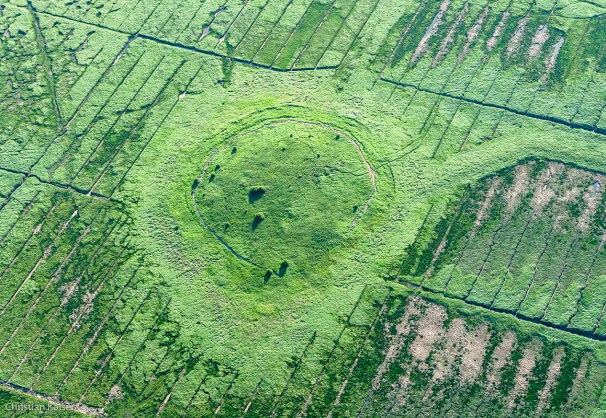Dieses Luftbild einer Knicklandschaft mit frisch bestellten Äckern, zeigt an wie leicht bzw. sandhaltig die Böden hier auf der Geest sind… und der Wind weht beinahe ständig von See her.