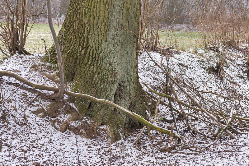 eine morsche alte Eiche im Knick, beim letzten Sturm brach sie ab