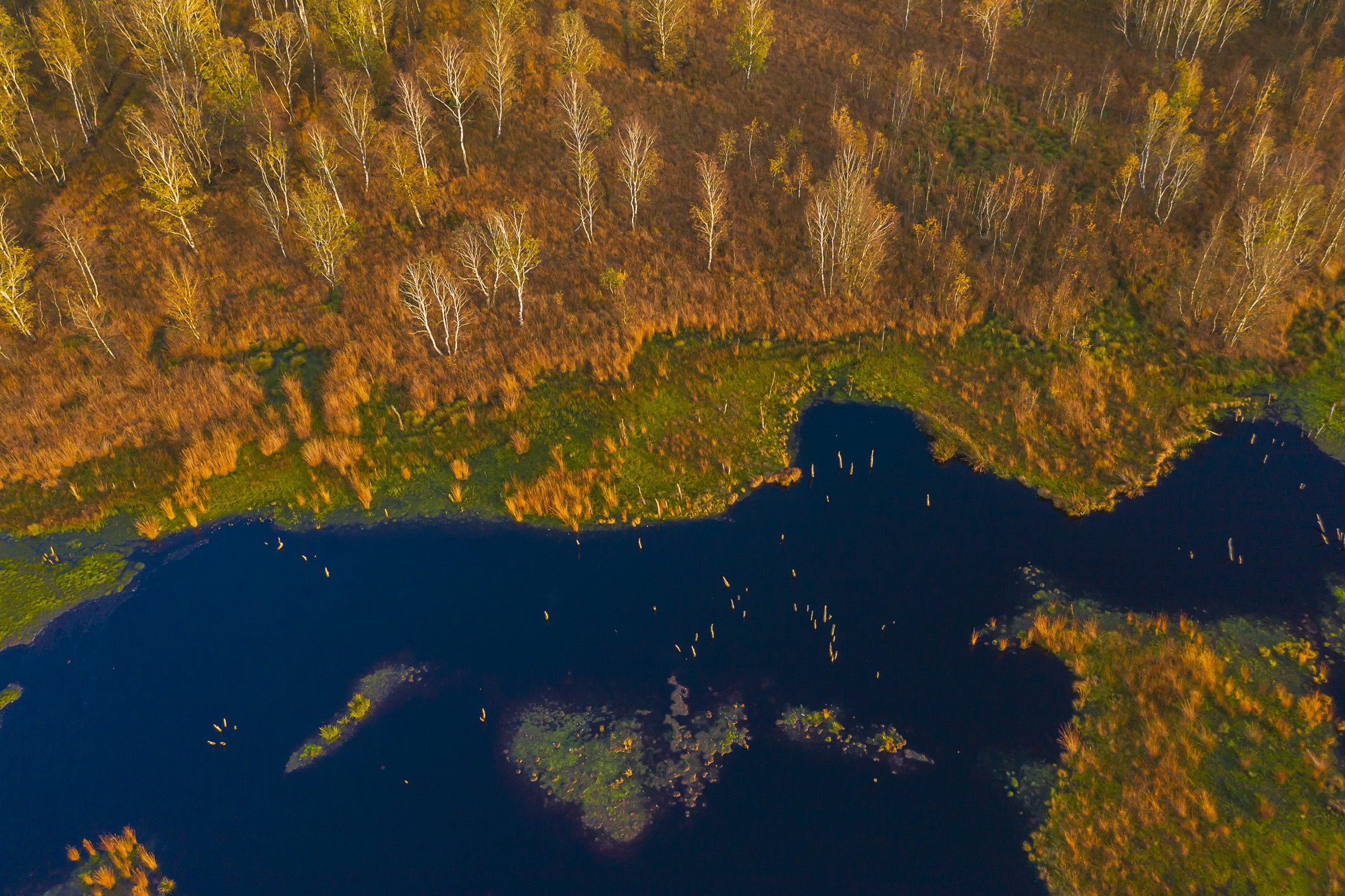 Birken besiedeln den Rand des Moores, werden ihre Wurzeln dauerhaft umspült geben sie auf.