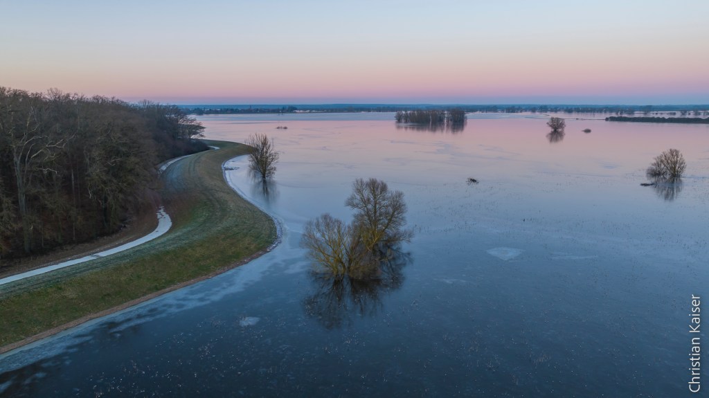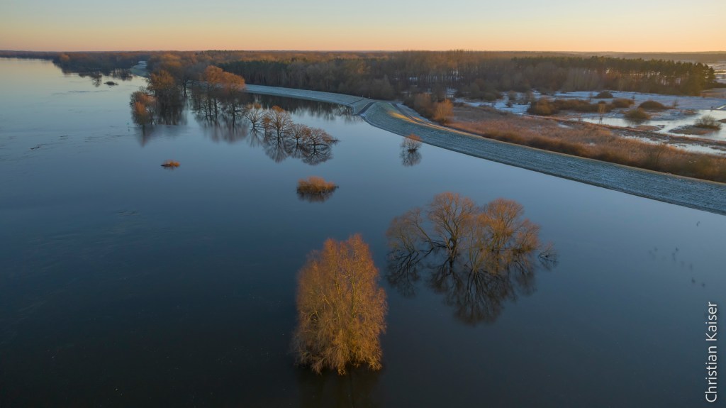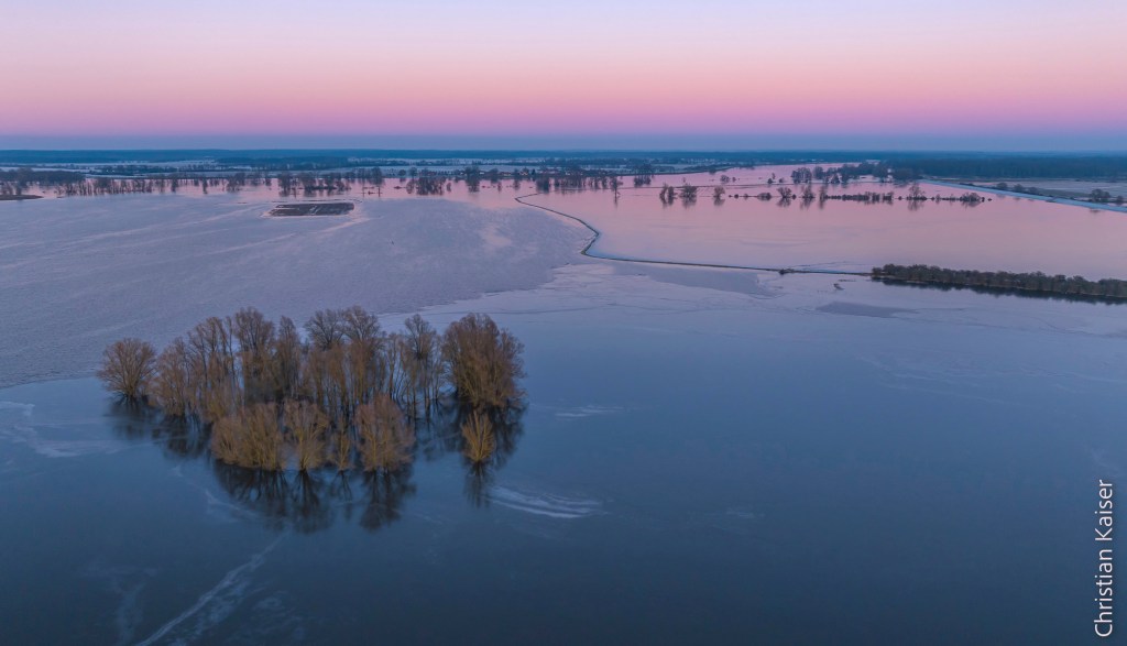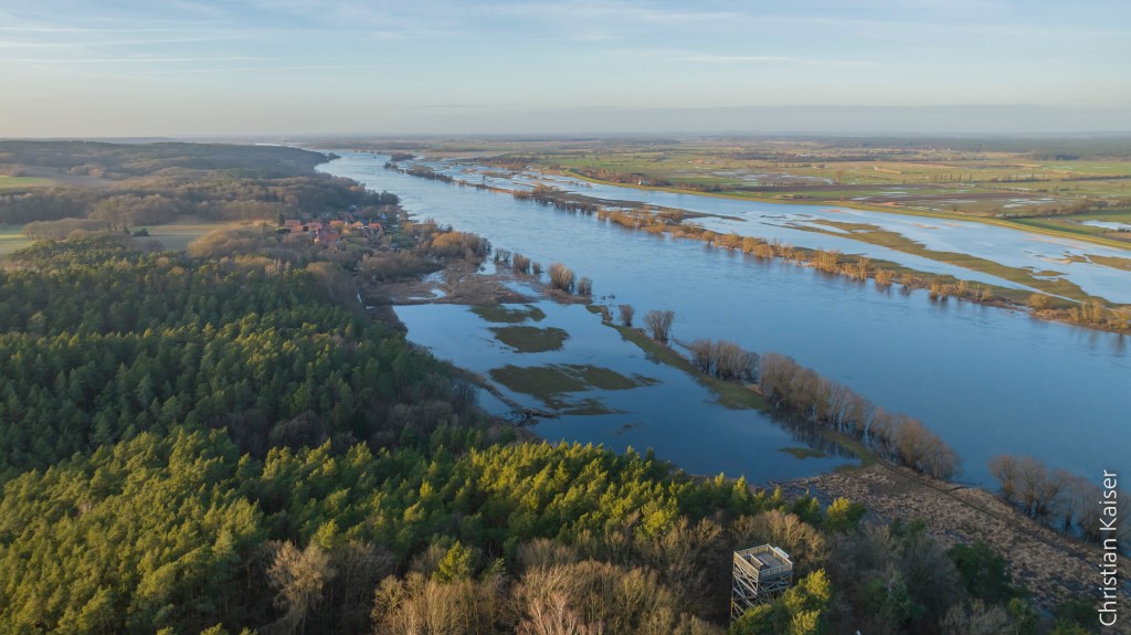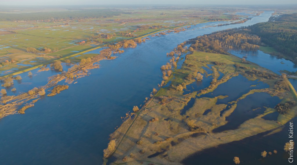 Das Winterhochwasser der Elbe hat sich in der naturnahen Elbaue ausgebreitet