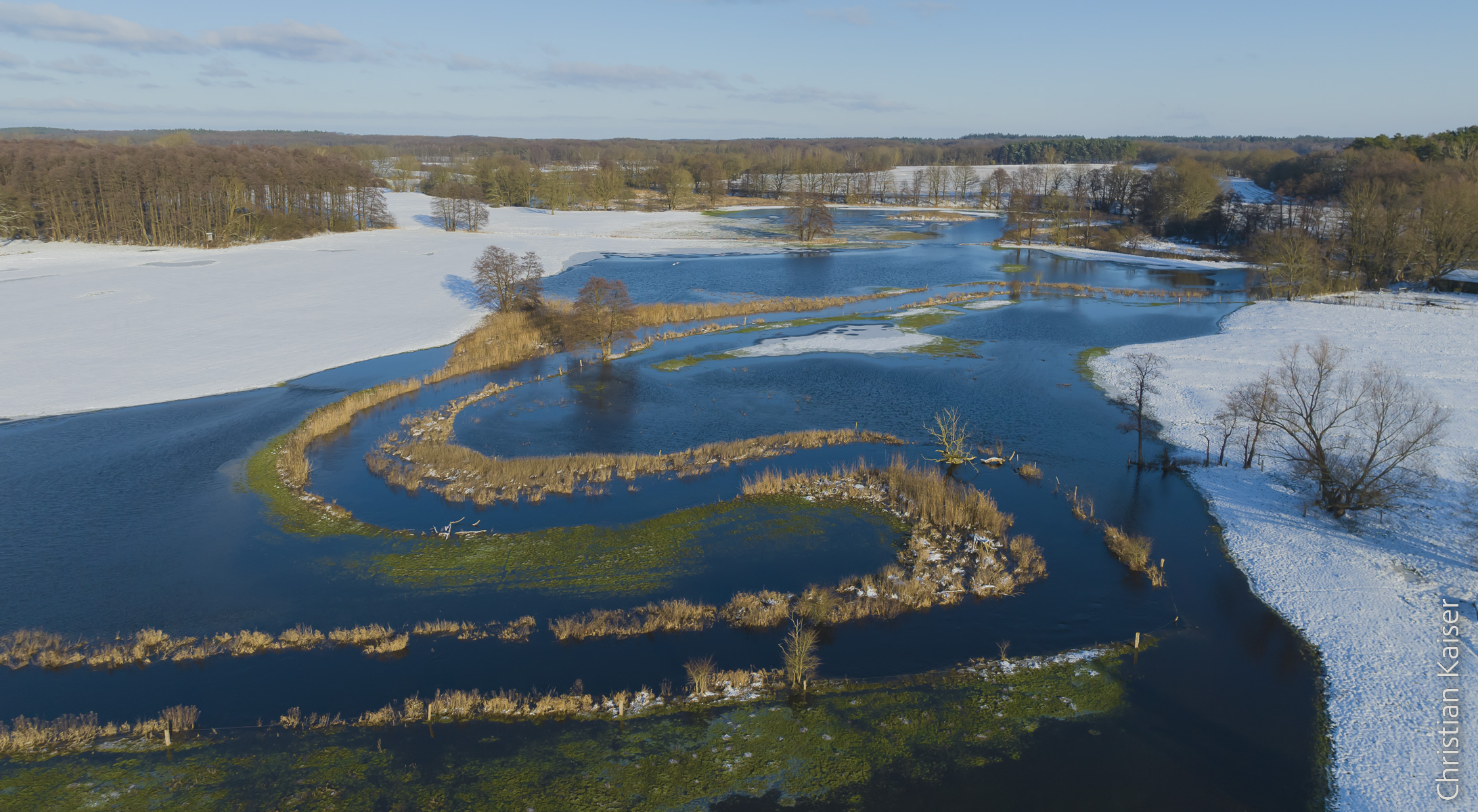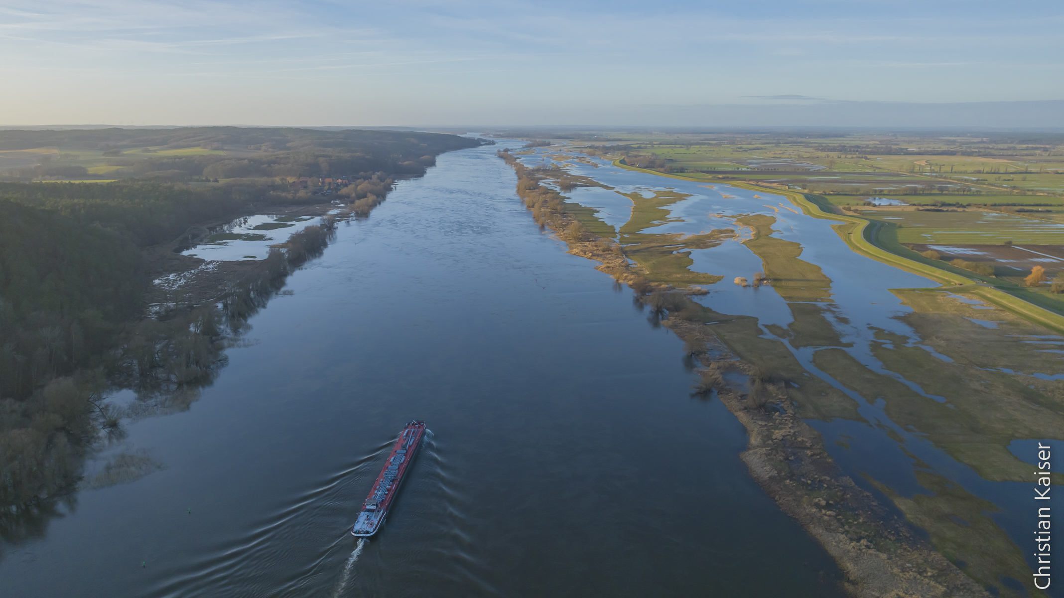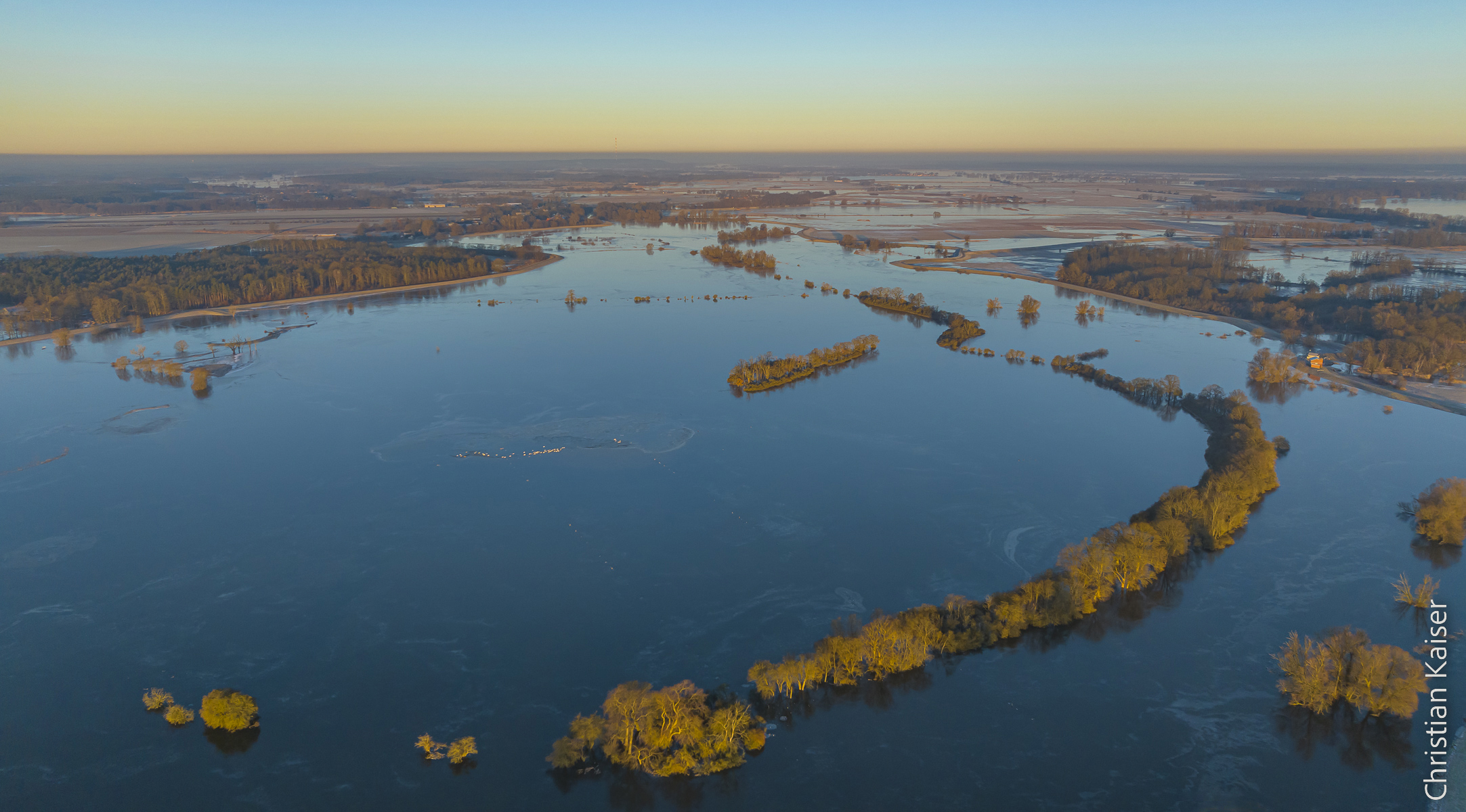 Das Winterhochwasser der Elbe hat sich in der naturnahen Elbaue ausgebreitet