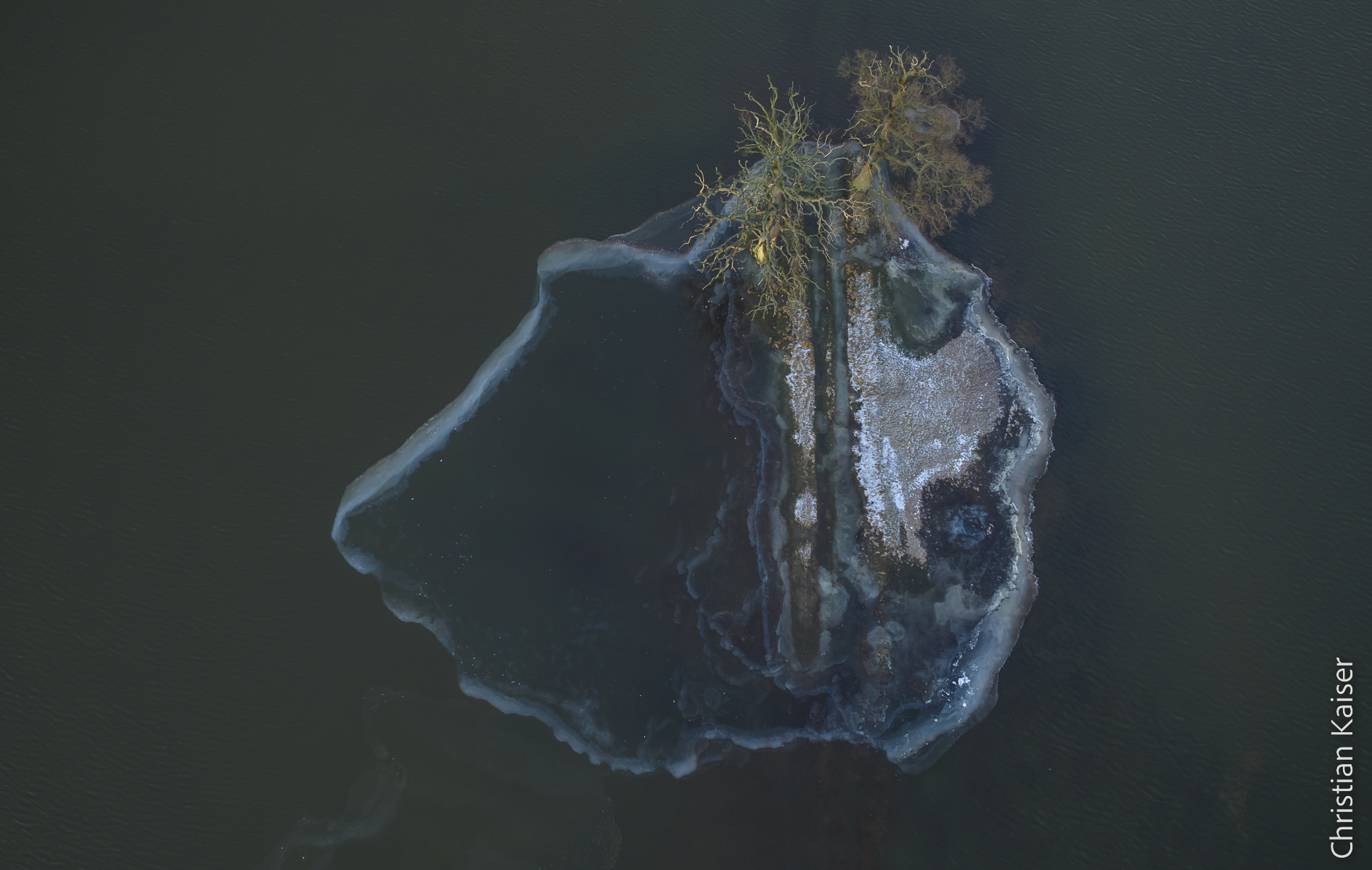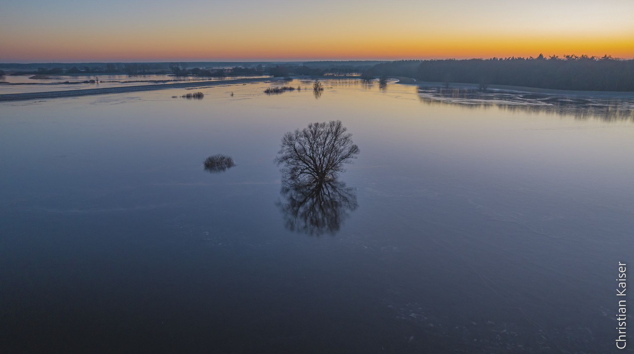 „Draufsicht“ Zwei Eichen ragen aus dem Wasser – Aland am Grünen Band