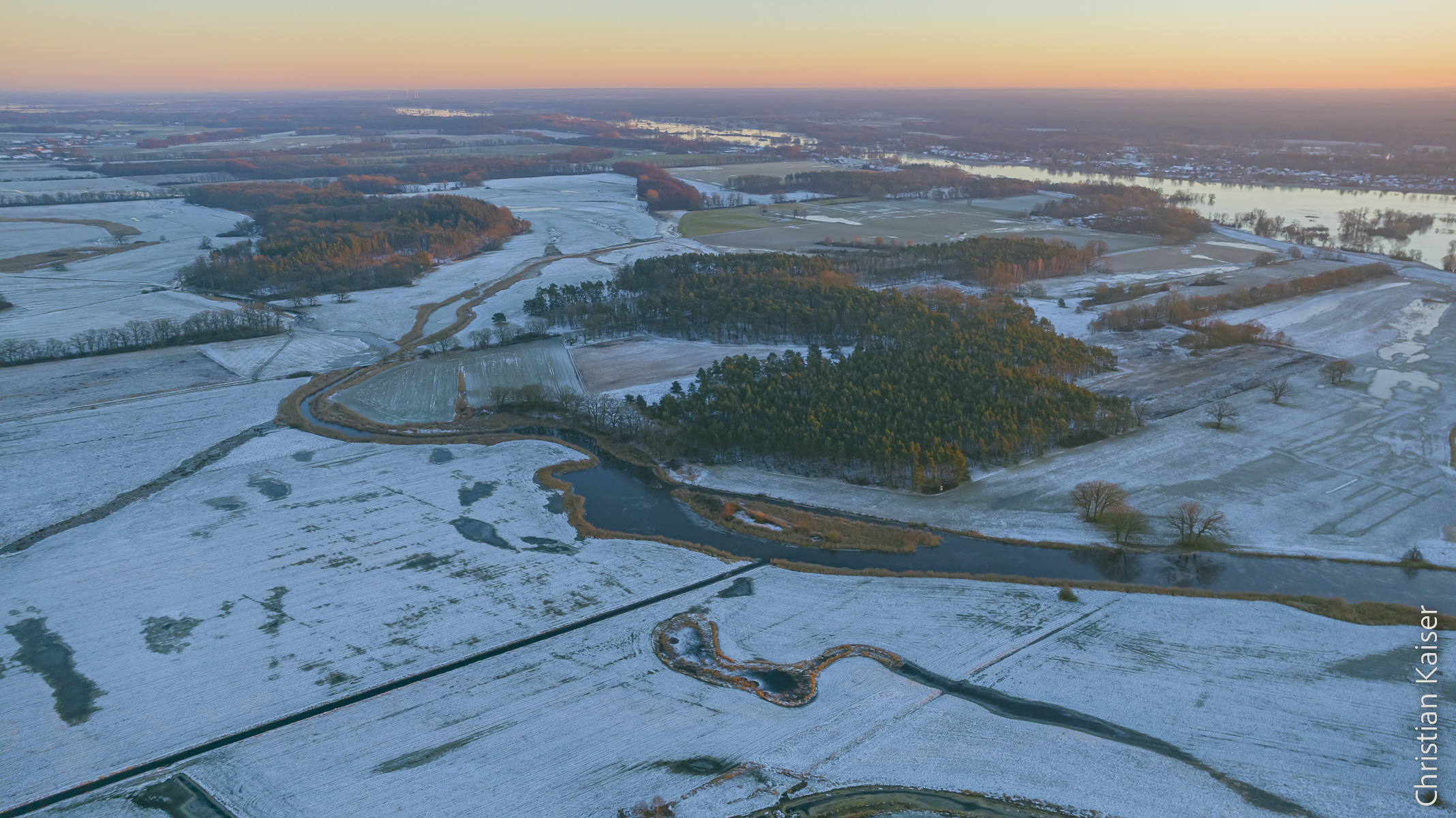 Blick auf die Elbe- Aland Flussniederung, kurz vor Sonnenuntergang